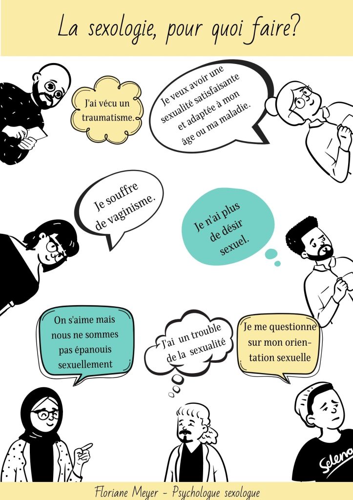 Que ce soit par rapport à un trouble de la sexualité, un questionnement, des recherches d’informations ou d’éducation à la sexualité, le sexologue peut être un professionnel ressource. Celui-ci est formé à vous accompagner avec bienveillance et respect. N’hésitez pas à consulter un-e professionnel-le pour ne pas rester seul-e avec vos difficultés.